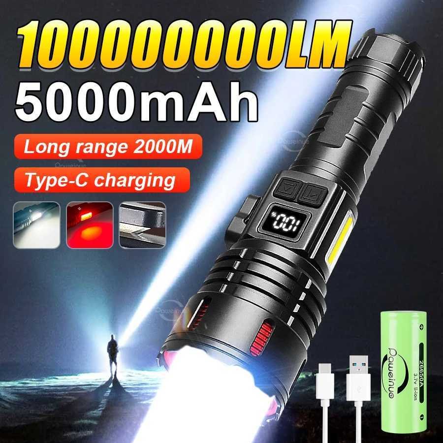 This high-power LED flashlight is designed with durability and versatility in mind. With its ultra-bright 1000000LM output, you'll have ample light to illuminate even the darkest spaces. The flashlight features a rechargeable battery that lasts up to 26 hours on low mode, ensuring it's ready when you need it most.