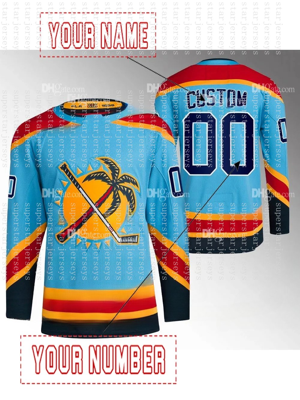 Show off your favorite hockey players in style with this customizable Brad Marchand jersey! This high-quality jersey allows you to add your own names and numbers of Aleksander Barkov, Matthew Tkachuk, and Gustav Forsling using the included iron-on numbers and letters. Perfect for the DIY hockey fan looking to create a unique, personalized keepsake.