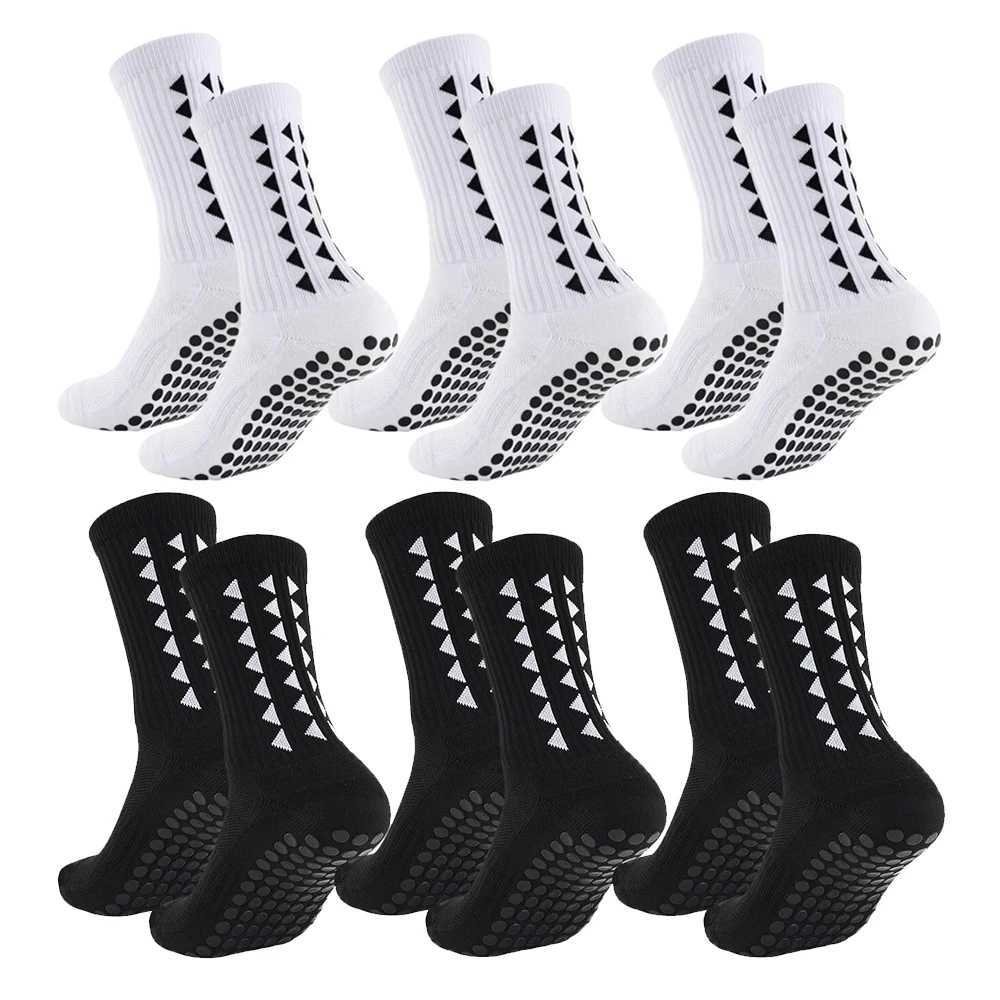 Upgrade your workout or sports gear with these multi-purpose athletic socks. Featuring a grip bottom design, they offer superior traction on various surfaces, preventing slipping and enhancing performance. Ideal for running, cycling, soccer, and other intense exercise routines. Available in sets of six pairs for both men and women.