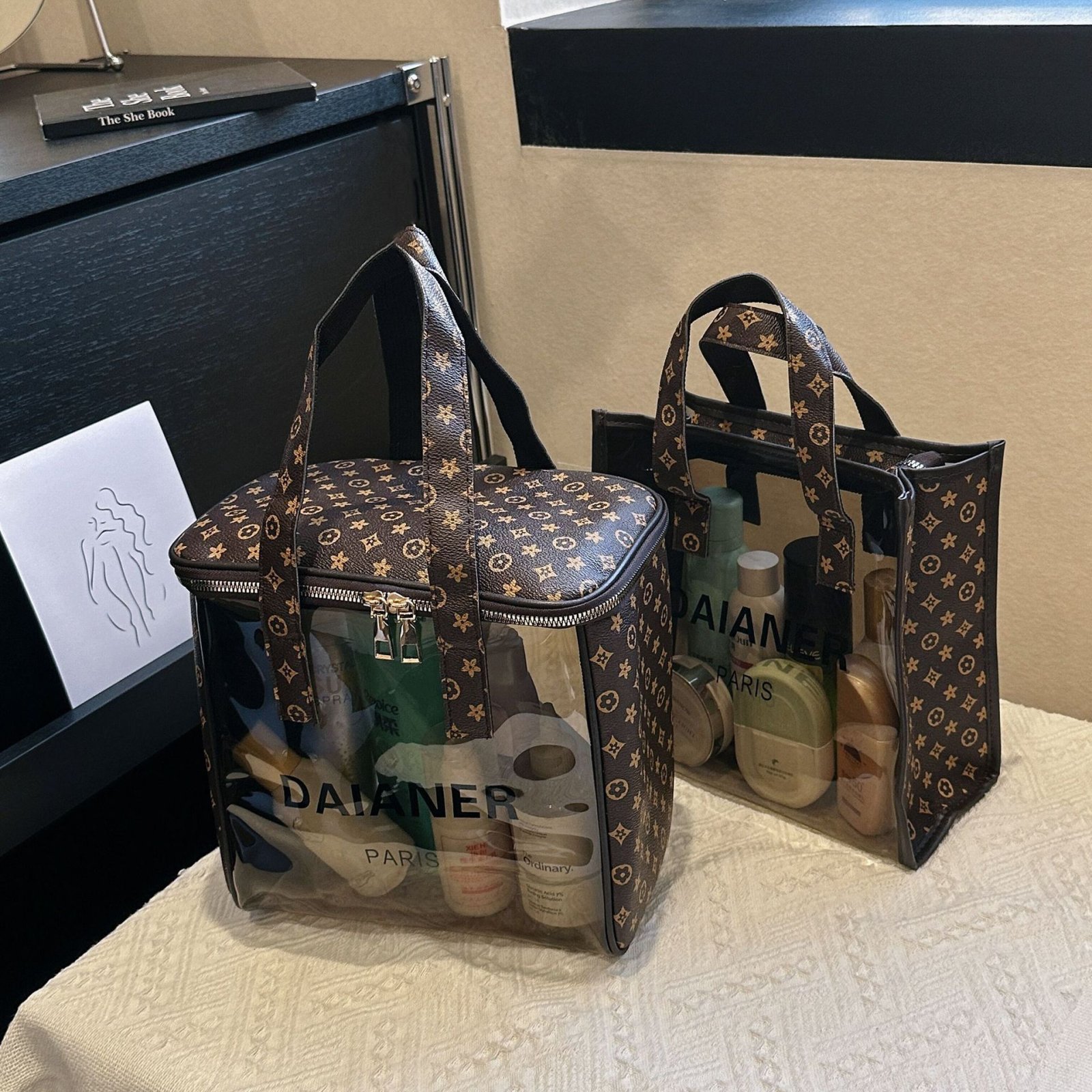 Keep your toiletries organized and protected on the go with this luxury travel bag. Its semi-transparent design makes it easy to see what's inside, while the waterproof material ensures everything stays dry. The large capacity allows you to pack all your essentials, making it ideal for long trips or family vacations.