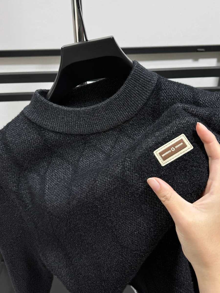 This luxury mens knitted sweater is perfect for keeping you warm during the cold winter months. Featuring a plain neck jacquard design and thickened fabric, this sweater is not only fashionable but also incredibly comfortable. The plow pattern adds a unique touch to the classic design, making it stand out from ordinary sweaters.