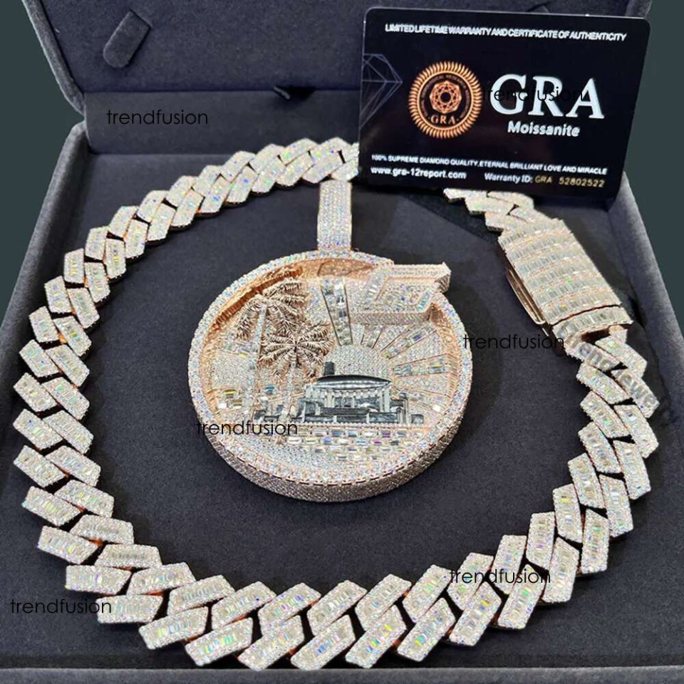 Bring your unique design vision to life with this customizable moissanite necklace. Perfect for hiphop fans wanting a blinged-out look that passes the dia test. This full-iced Cuban chain adds the perfect touch of luxury to any outfit.