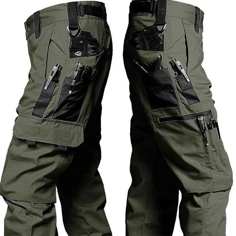 These tactical work pants are designed for men who enjoy the outdoors or need durable clothing for their job site. Made with waterproof fabric to protect against elements, they feature multiple pockets for tools and accessories. Ideal for hiking, working, or everyday wear.