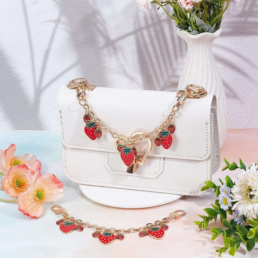 This handheld strawberry flower bow chain pendant is the perfect finishing touch for any fashion-forward DIY project. Crafted from durable metal, it features a vibrant strawberry motif and a delicate floral bow chain, making it ideal for embellishing handbags, backpacks, hats, or even as a statement necklace. Easy to attach with included hooks, this versatile accessory allows you to customize your look with flair. Whether you’re sewing onto fabric or attaching it to a zipper pull, this decoration adds a whimsical, eye-catching element to your creations. Ideal for gift-giving, crafting fairs, or personalizing your wardrobe, this piece brings joy and creativity to every project.