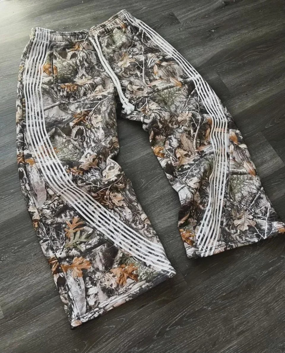 Upgrade your casual wear collection with our Y2K Personality Rock Retro Loose Camouflage Sweatpants. These mens drawstring striped sweat pants feature a high-quality, soft fabric that ensures comfort and durability. The loose fit and elasticated waistband make them perfect for lounging around or working out. The drawstring detail adds a unique touch to these stylish sweatpants.